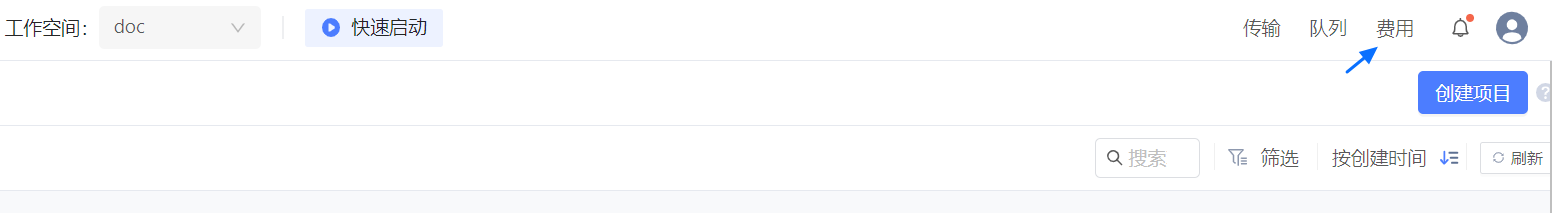 2. 单击右上角的 费用,进入 费用中心资金账户